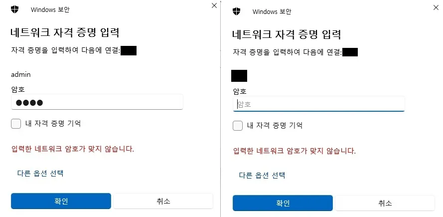 윈도우11 네트워크 자격증명 해제를 하지 않고 계속 저장된 상태로 두면, 비밀번호가 변경됐을 때 자동 접속이 실패하면서 오류가 발생합니다. 이 경우 기존 자격증명을 삭제하고 새로 입력해야 해요.