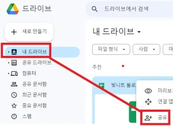 구글 드라이브의 진정한 강점은 바로 파일공유 기능에 있습니다.