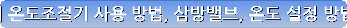 삼방밸브 작동 원리와 온도 설정 방법