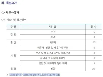교육공무원 경조사 휴가, 휴가일수, 특별휴가, 주말 포함 여부 알아보기 본문