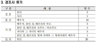 방계 친족과 배우자 가족 경조사 휴가 계산법