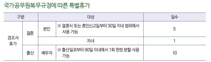 2025년 현재 시행되고 있는 규정에 따르면, 경조사 휴가는 본인과 가족의 중요한 순간에 사용할 수 있는 법정 권리입니다. 인사혁신처 공식 자료를 보면 더 자세한 내용을 확인할 수 있어요.