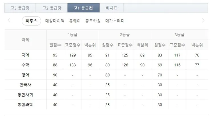 그래서 영어는 표준점수보다 원점수 관리가 중요합니다. 특히 3점 문항을 최대한 많이 맞추는 게 고득점의 핵심이에요.