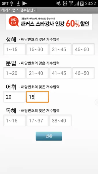이걸 외워두면 가채점할 때 바로바로 계산할 수 있어요.