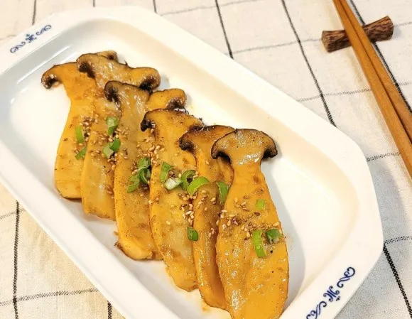굽는 동안 송이에서 수분이 나오면서 지글지글 소리가 나는데, 그 소리가 멈추기 직전이 최적의 타이밍입니다. 갓 부분이 살짝 오그라들고 표면에 윤기가 돌면 완성이에요.