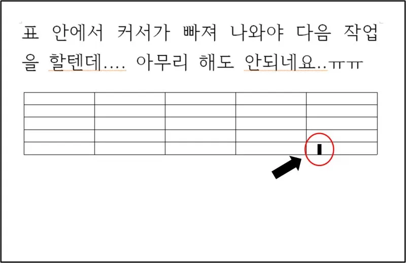 엔터를 아무리 눌러도, 방향키를 눌러도 표 안에서만 맴돌고 있는 커서를 보면서 정말 답답했죠. 저도 처음 실무에서 한글 문서 작업할 때 이 문제로 엄청 고생했어요.